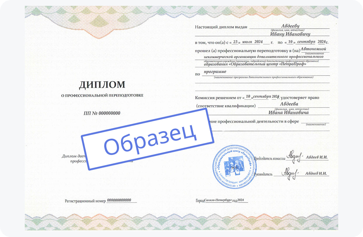 После окончания курсов и успешной аттестации вам будет выдан диплом об образовании. Вместе с ним вы получите приложение с оценками. Этот документ характеризуется бессрочным действием на всей территории России и дает право работать в любом регионе. Получить его могут только обладатели профессионального или высшего образования, желающие усовершенствовать компетенции и открыть перед собой новые карьерные перспективы. Программа переподготовки длится от 256 до 1400 часов. Все сведения вносятся в Единый реестр ФИС ФРДО.